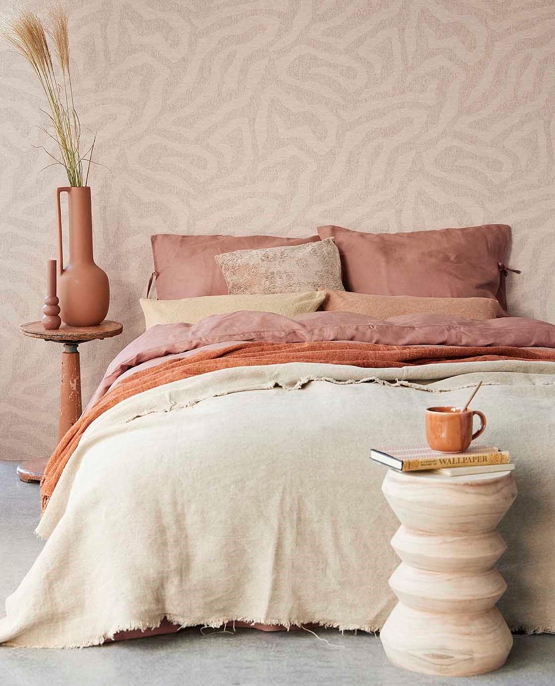 Har du en forkærlighed for berørbare teksturer? Delikate detaljer opdager du først, når du ser godt efter. Embrace er et fascinerende udtryk for naturlige materialer. Rigt sammenflettede teksturer, professionelt udformet til smukt tapet. Berørbare teksturer er hemmeligheden bag denne kollektion. Designene er sofistikerede og lagdelte. Nogle overdådige og dristige, andre sarte og beherskede. Lad fingrene følge trådene rytmisk sammenflettet i et organisk motiv. Drøm dig væk til sand krusninger skulptureret af havets bølger. Bliv inspireret af farverige prikker blandet i en fantasifuld mosaik eller nuancerede farvelag med frodighed fra keramiske glasurer. Du kan også vælge et raffineret bladmønster, der skinner blødt mod en mat baggrund. Eller den subtile grafiske vævning, der minder om et gobelin. Varme neutrale farver, rødmende jordfarver, tåget grågrøn og intim okker beriger dit interiør. Omgiv dig selv med varme og nyd den bløde berøring af Embrace hver dag.
