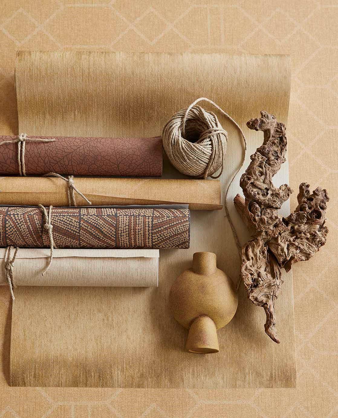 Har du en forkærlighed for berørbare teksturer? Delikate detaljer opdager du først, når du ser godt efter. Embrace er et fascinerende udtryk for naturlige materialer. Rigt sammenflettede teksturer, professionelt udformet til smukt tapet. Berørbare teksturer er hemmeligheden bag denne kollektion. Designene er sofistikerede og lagdelte. Nogle overdådige og dristige, andre sarte og beherskede. Lad fingrene følge trådene rytmisk sammenflettet i et organisk motiv. Drøm dig væk til sand krusninger skulptureret af havets bølger. Bliv inspireret af farverige prikker blandet i en fantasifuld mosaik eller nuancerede farvelag med frodighed fra keramiske glasurer. Du kan også vælge et raffineret bladmønster, der skinner blødt mod en mat baggrund. Eller den subtile grafiske vævning, der minder om et gobelin. Varme neutrale farver, rødmende jordfarver, tåget grågrøn og intim okker beriger dit interiør. Omgiv dig selv med varme og nyd den bløde berøring af Embrace hver dag.