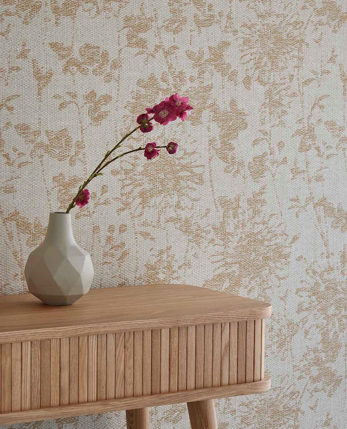 En morgen, der glitrer i tåge. Palmeblade stadig dækket af dugdråber, der glimter som ædelsten. Når naturen vågner, blander krydrede dufte sig med dagens lyde. I den kvælende sol ligger håndmalede stoffer og tørrer. Øst og vest mødes i Emerald-kollektionen. Vælg den stemning, der passer til dig med Emerald. Fra delikat og drømmende til upoleret og robust. Forestil dig selv i en anden verden med fredfyldte silhuetter af tropiske grene og eksotiske blomster, badet i et slør af filtreret lys. Eller oplev den naturlige struktur af fin, vævet bambus. Et dristigt blomstermotiv på groft lærred, det rustikke mønster af teksturerede blokke med et strejf af glans eller det karakteristiske ikat-motiv vil forvandle dine vægge til en fest for øjet. Vægmalerierne appellerer også til din fantasi. Et bjerglandskab delvist skjult af tåge, en flok traner, der rejser sig for at hilse på solopgangen. Alt gengivet i en raffineret, delikat palet. Fra bløde pudderfarver, varme jordtoner til elegant smaragdgrøn og fortryllende natblå. Emeralds luksuriøse og lagdelte design vil tilføje stil til dit interiør.